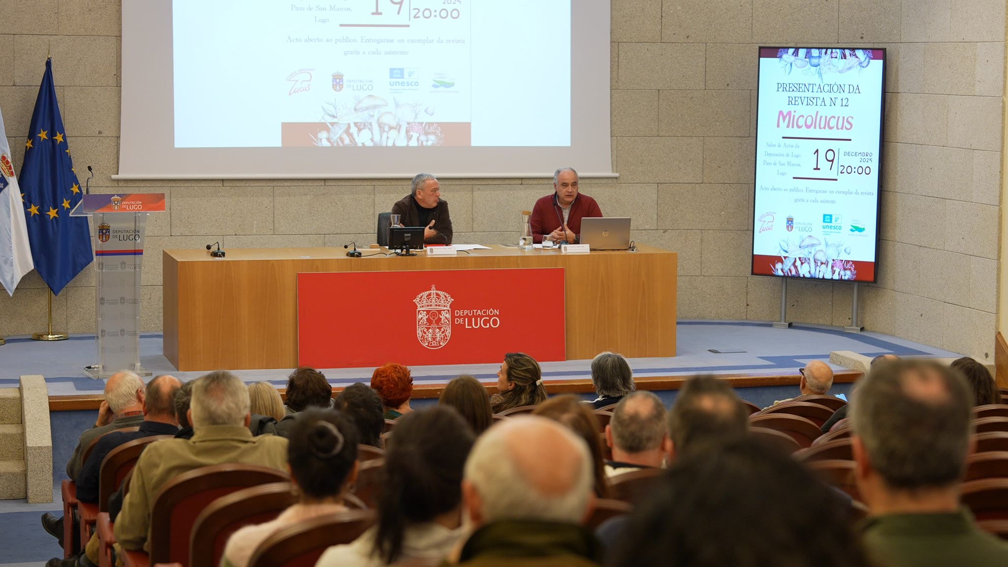 A Sociedade Micolóxica Lucus vén de presentar este venres no Salón de Actos do Pazo de San Marcos a 12ª edición da revista anual Micolucus. A institución provincial colabora con este colectivo, de referencia no estudo e na divulgación do patrimonio micolóxico da provincia, cunha achega económica de 3.500€ destinada á elaboración desta publicación e a diferentes actividades de formación. Nesta ocasión, a revista duplica a súa extensión e presenta artigos científicos e divulgativos relacionados coa micoloxía ou a primatoloxía. Ademais, non só se distribuirá por territorio nacional, senón que tamén chegará a 18 países.