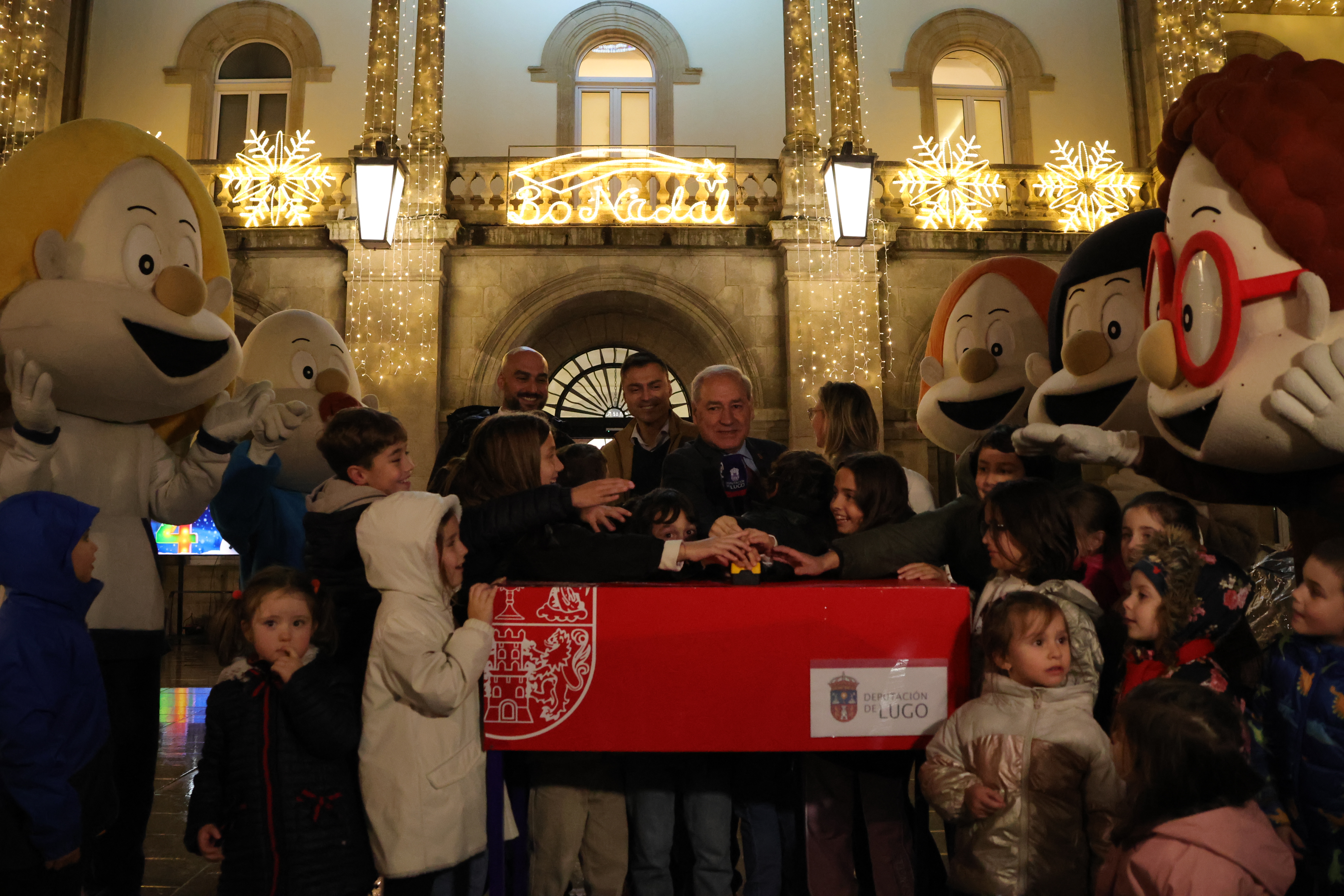 Ás 19:30 comezarán a soar as panxoliñas na Praza de San Marcos, interpretadas polo coro musical Orfeón lucense. Despois, está previsto que o Presidente da Deputación, José Tomé Roca, acenda xunto aos Bolechas o alumeado de Nadal exterior e interior do edificio histórico. Ata as 20:30 horas, a coral seguirá coas nadaliñas, amenizando a aquelas persoas que estean pola praza.