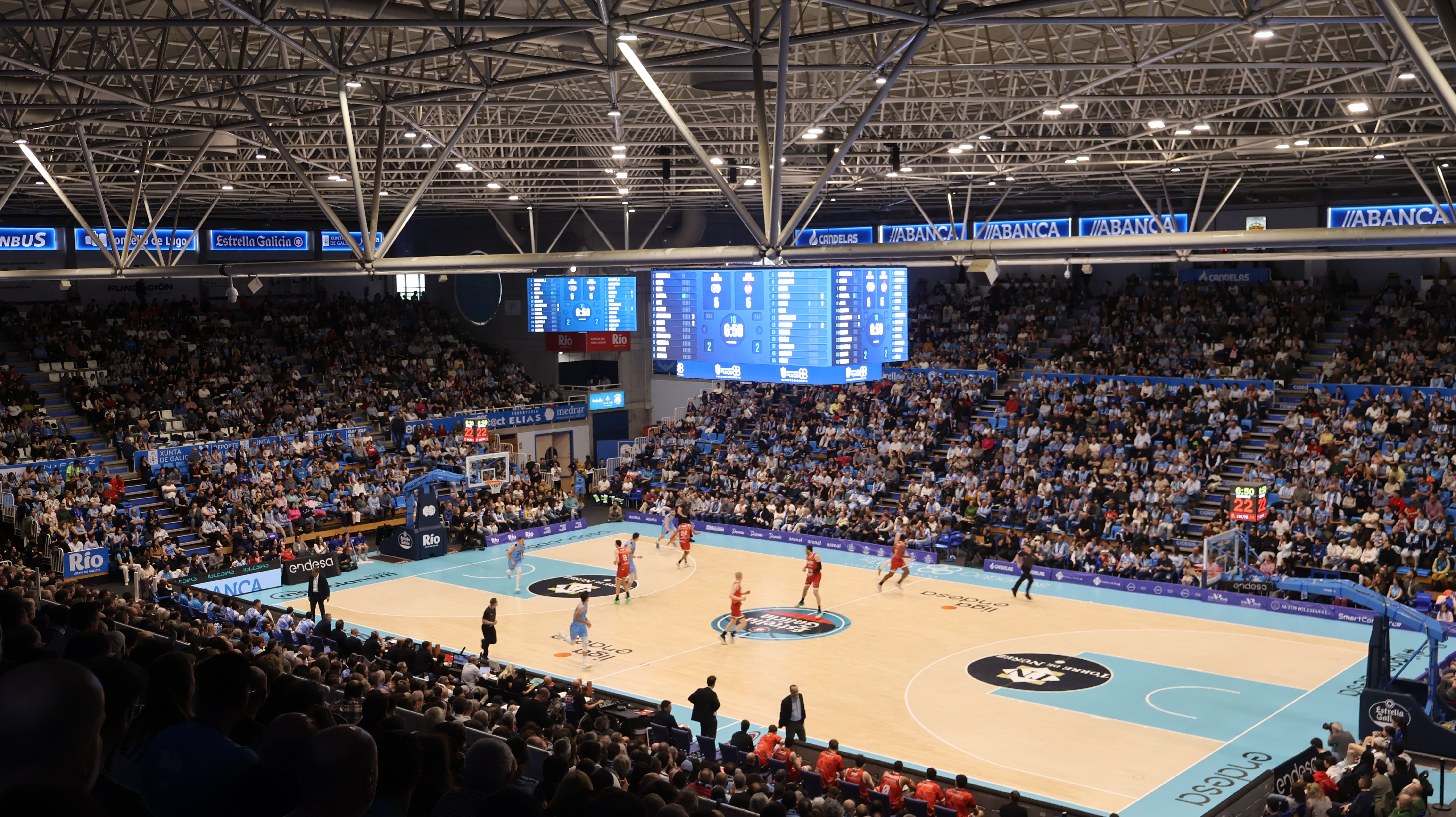 Esta tarde sábado estreouse o novo videomarcador do Pazo dos Deportes: un equipo LED de gran formato e esquinas curvas, suspendido sobre o centro da pista. O partido entre CB Breogán Manresa foi, como estaba previsto, o escenario da estrea do novo equipamento que dá un salto audiovisual e tecnolóxico ao recinto deportivo.