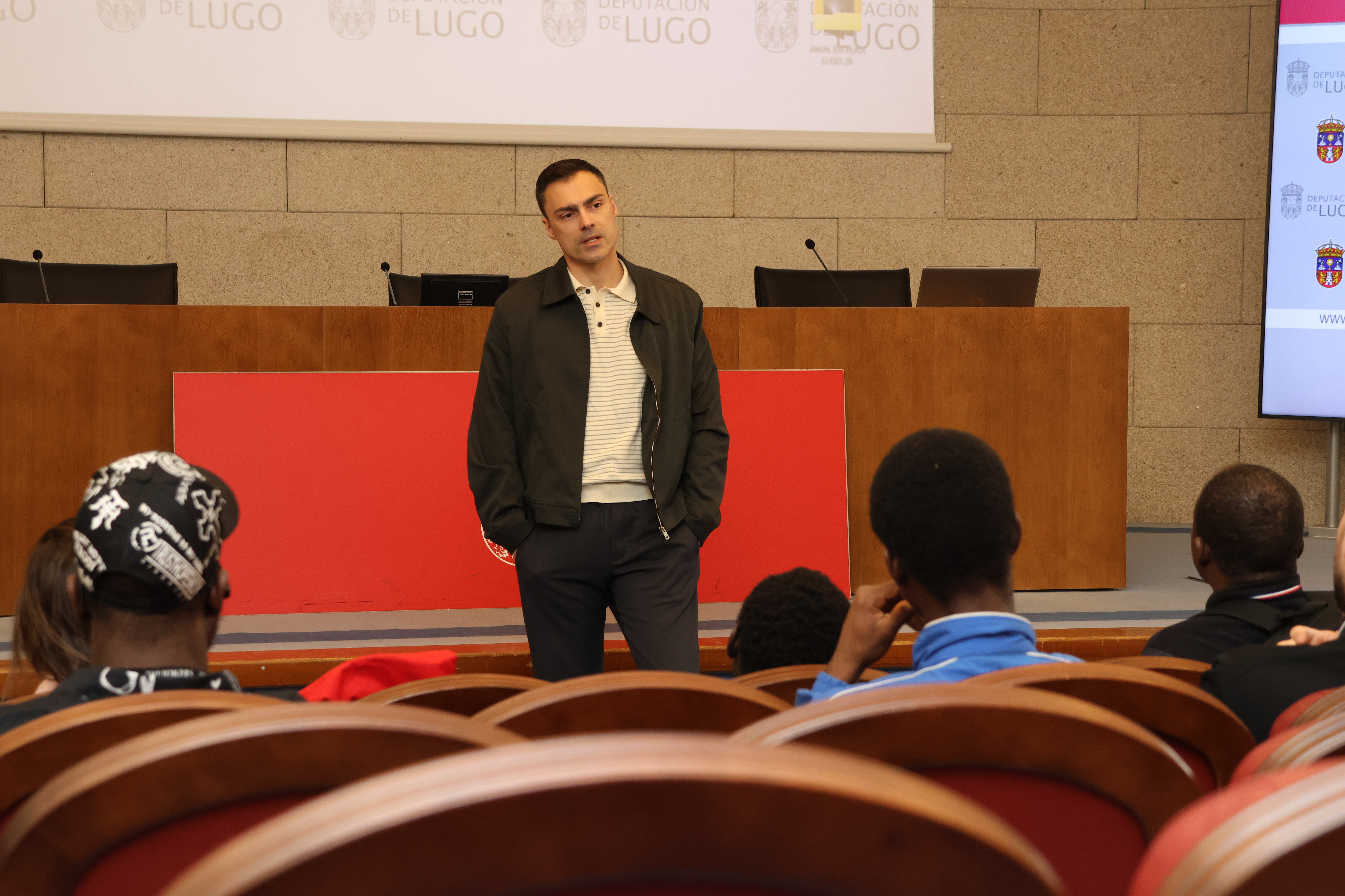 O Deputado de Promoción Económica e Social, Pablo Rivera Capón, recibiu este mércores no Pazo de San Marcos a un grupo composto por unhas trinta de persoas usuarias de Diconía Lugo, unha entidade social que traballa con colectivos en situación de vulnerabilidade. Rivera Capón deulles a benvida nunha xornada na que o grupo puido achegarse a parte da historia da sede provincial, un dos edificios máis emblemáticos da provincia. A visita continuou cun percorrido guiado polas instalacións, no que as persoas participantes puideron coñecer de primeira man o funcionamento da institución provincial e o valor patrimonial do edificio.