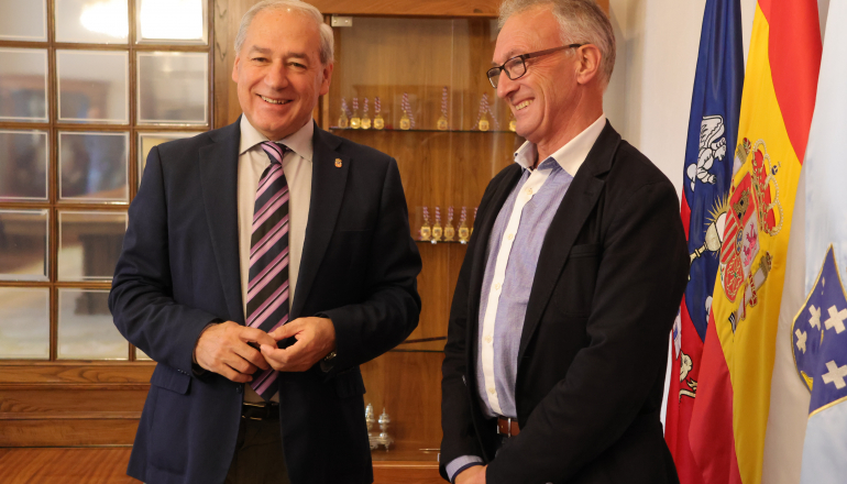 O Presidente, José Tomé Roca, e o Alcalde, José Luis Raposo Magdalena, veñen de asinar no Pazo de San Marcos un convenio de colaboración para acondicionar o firme nas rúas Observatorio e Vía Romana e no acceso ao Mercado Gandeiro