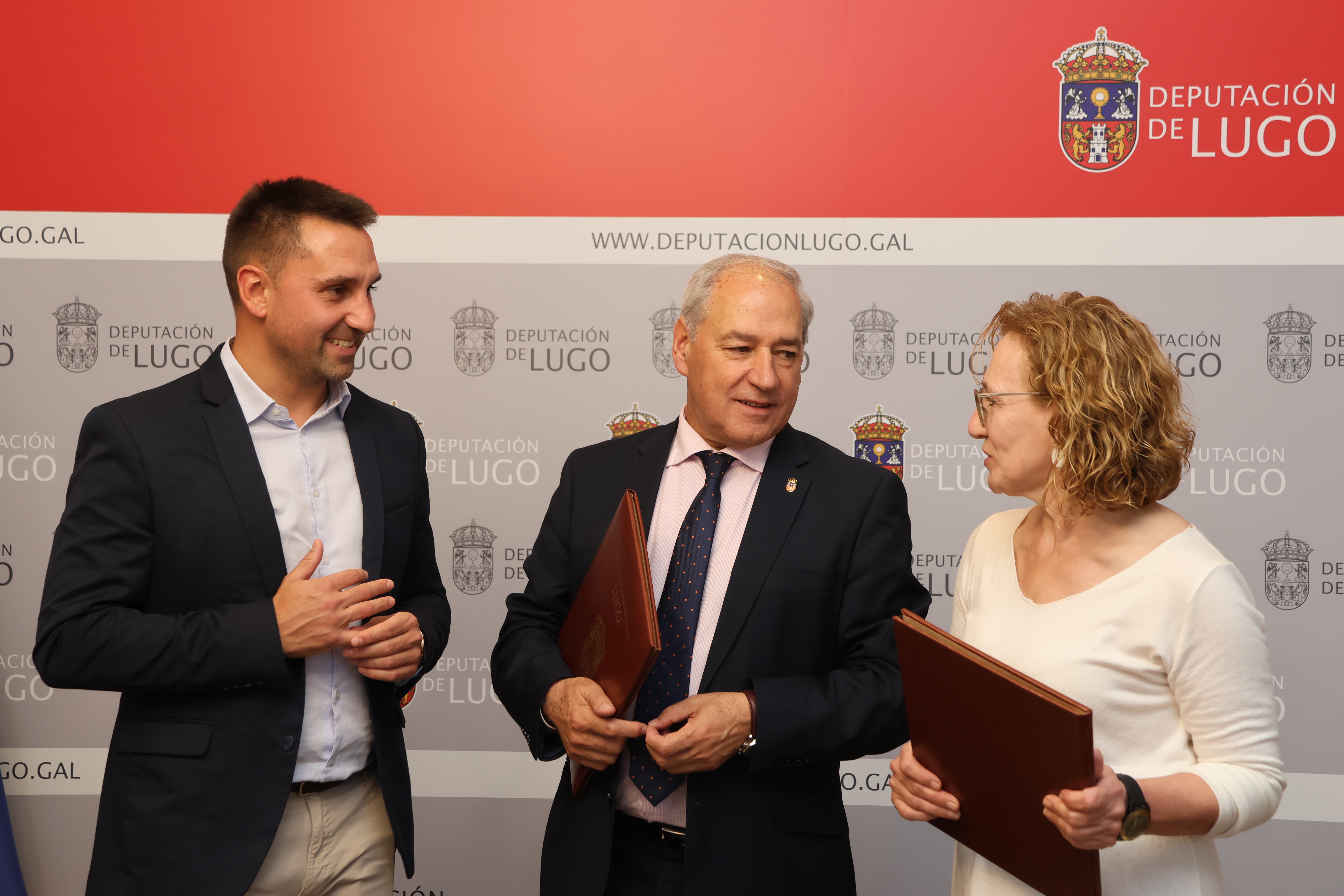 O Presidente da Deputación de Lugo, José Tomé Roca, e a responsable da Asociación de Sendeirismo Trabada Paso a Paso, Amparo González Sanjurjo, acompañados polo Alcalde de Trabada, Rubén García Freije, asinaron un convenio de colaboración no Pazo de San Marcos. A través deste acordo, a institución provincial achega preto de 2.000€ á entidade para a adquisición de equipamento que garanta a actividade do colectivo en situacións climatolóxicas adversas.