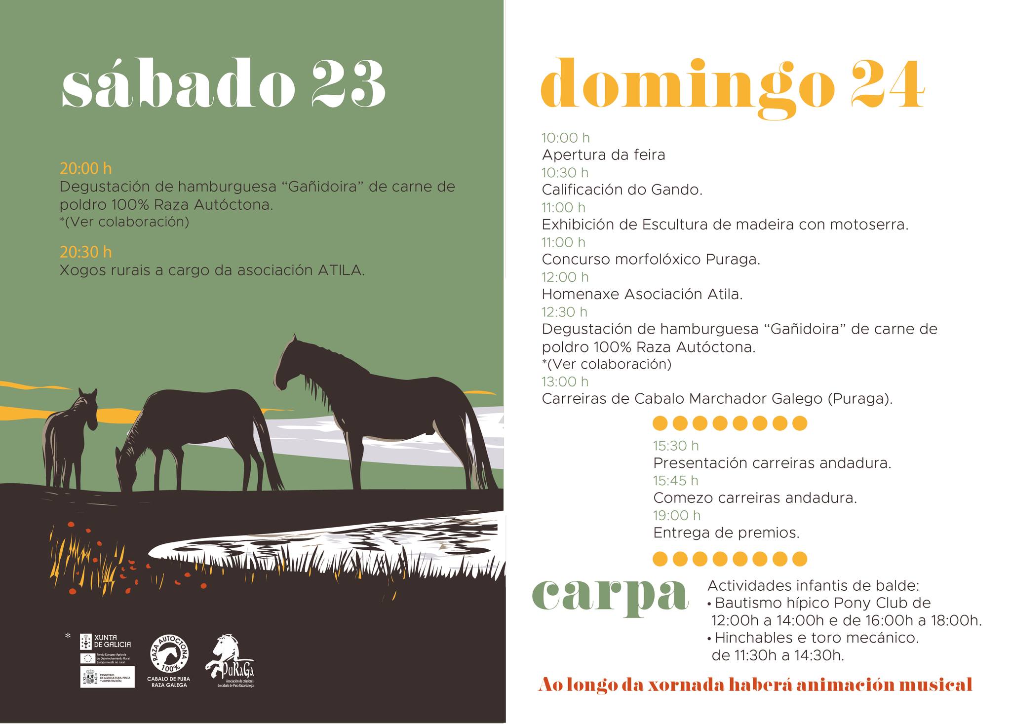 O domingo, o recinto feiral, onde se concentra a compra venda de gando, abrirá ás 10.00 horas. O mercado prolongarase durante a mañá, con actividades paralelas como unha exhición de escultura de madeira con motoserra, un concurso morfolóxico de Puraga ou unha homenaxe á Asociación Atila, que con 200 persoas socias aglutina a paixón polo cabalo en Muras e na contorna. Durante a xornada, as máis pequenas e pequenas poderán disfrutar de actividades propias como bautismos hípicos.