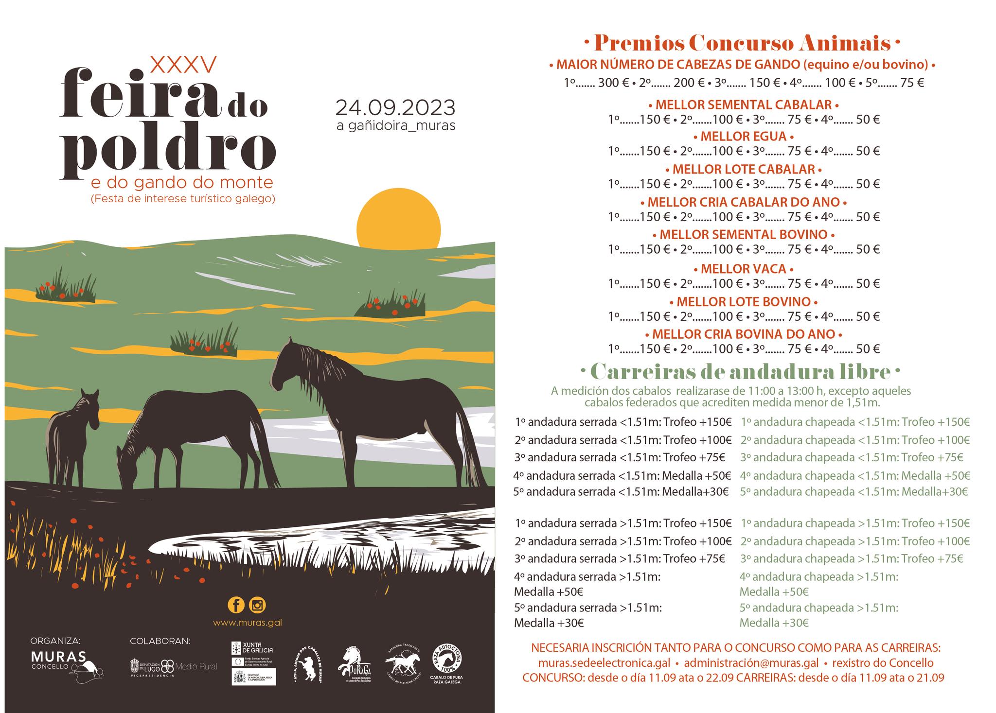 Unha das novidades do programa son as carreiras de andadura, que se celebrarán durante a tarde, nas modalidaes serrada e chapeada. Tanto para as carreiras como para o concurso de animais requírese inscrición previa, no enderezo electrónico administracion@muras.gal ou a través da sede electronica do Concello de Muras. O prazo está aberto ata o o día 21, para as carreiras, e ata o 22, para o concurso de animais.