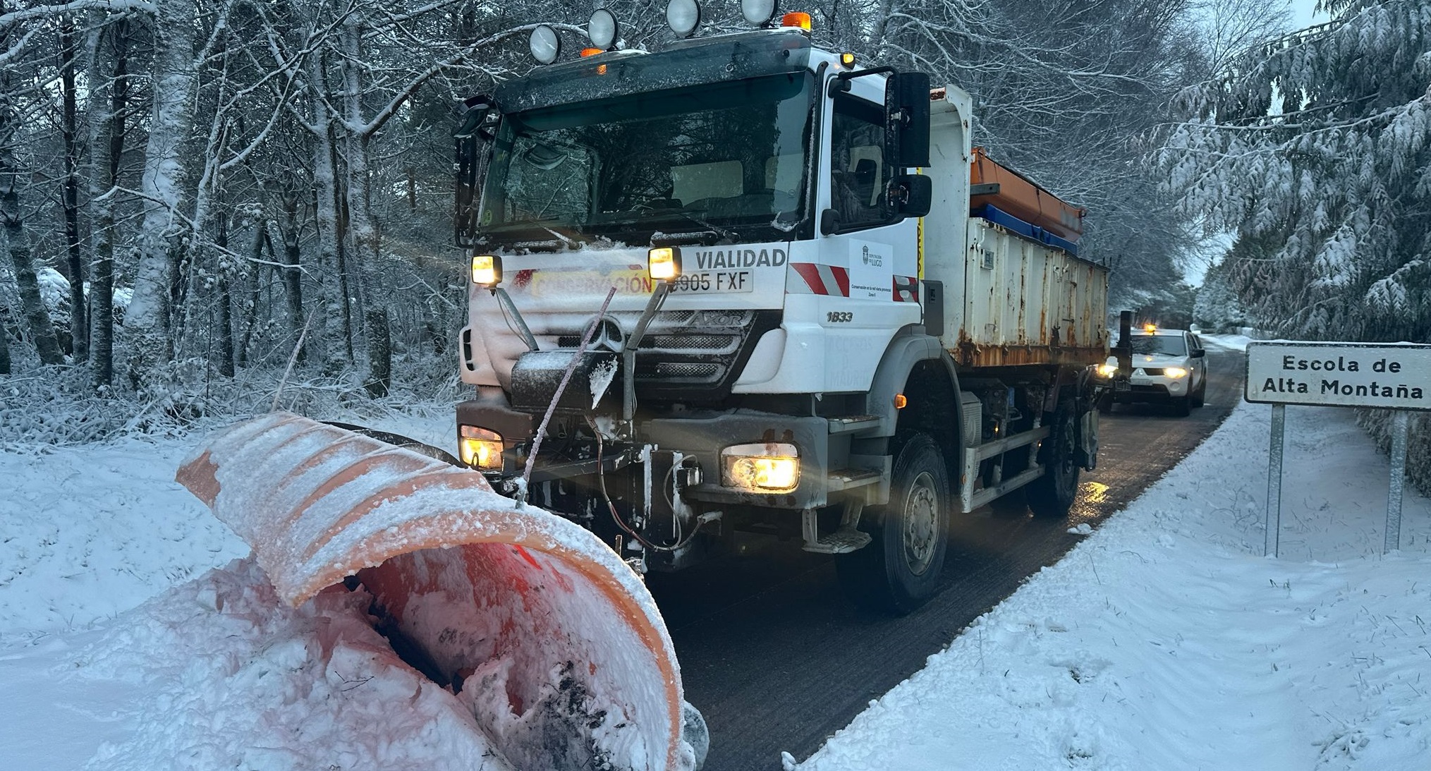 A Deputación despexa neve nas estradas da Montaña e permanece en alerta ante o temporal Ingrid