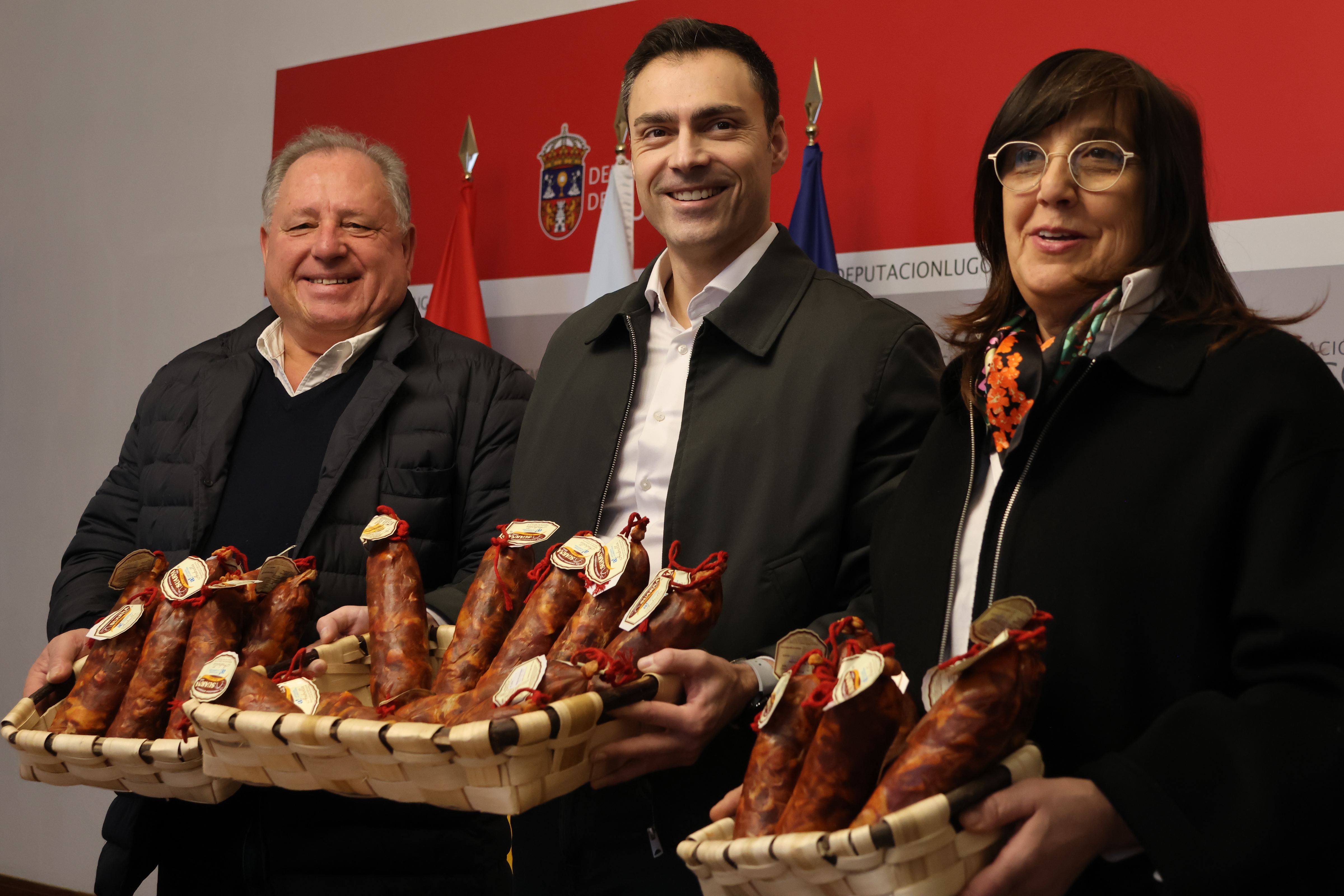 O Deputado de Promoción Económica e Social, PabloRivera, o Alcalde de Navia de Suarna, José Fernández Fernández, e a responsable de Embutidos Suarna, Mari Carmen Sánchez, presentaron este xoves na Sala de Xuntas do Pazo de San Marcos a XXXV Festa da Androlla, que porá á venda preto de 2.000 androllas este domingo de Entroido. A institución provincial é a única administración colaboradora con esta cita, á que achega unha aportación económica de 3.000 euros, a través do Plan Deputación de Cooperación cos Concellos.